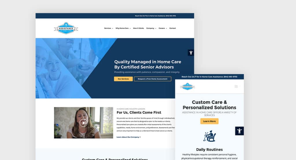 With custom care and personalized solutions, Assistance in Home Care knows how to provide assistance with patience, compassion, and integrity to clients of all ages. With over a decade of quality in home care, AIHC strives to provide a service that would preserve the dignity of their clients. Our mission was to focus on exhibiting caregiver services and highlight their refined approach of providing in-home care solutions through a cohesive rebranding.