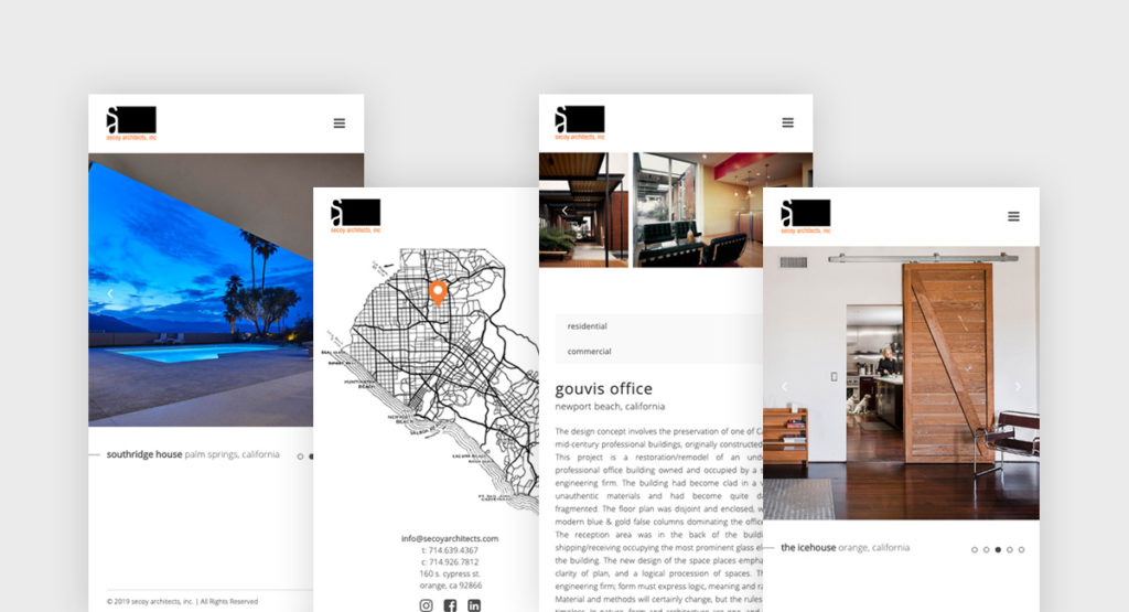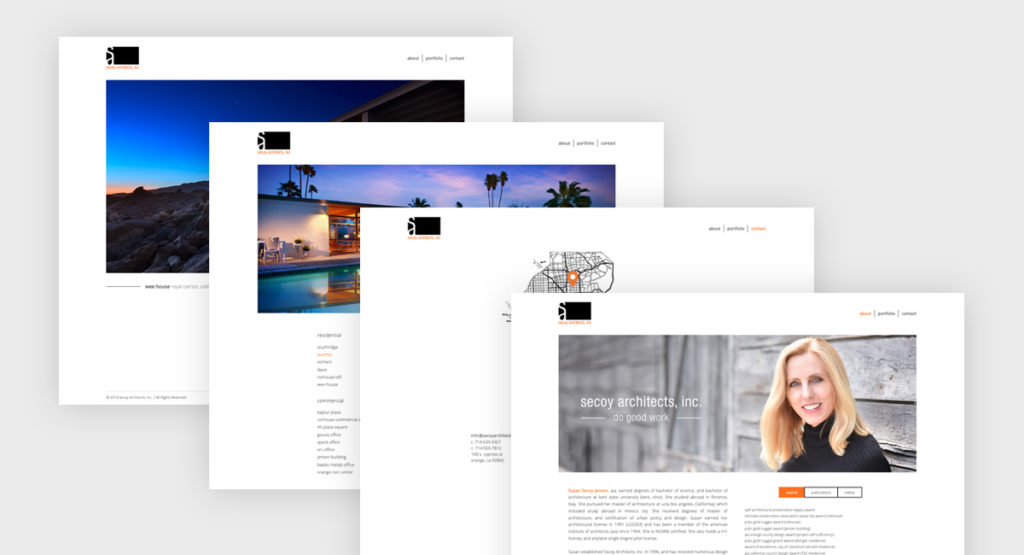 Susan Secoy of Secoy Architects, inc. specializes in the design of midcentury modern work and adaptive reuse projects, both residential and commercial. Our goal was to design and develop a site to exhibit her portfolio of work and expertise in the architecture community. The result was a branding project that consisted of a full site redesign for her work in a minimalistic layout as well as an updated logo that reflected her style.